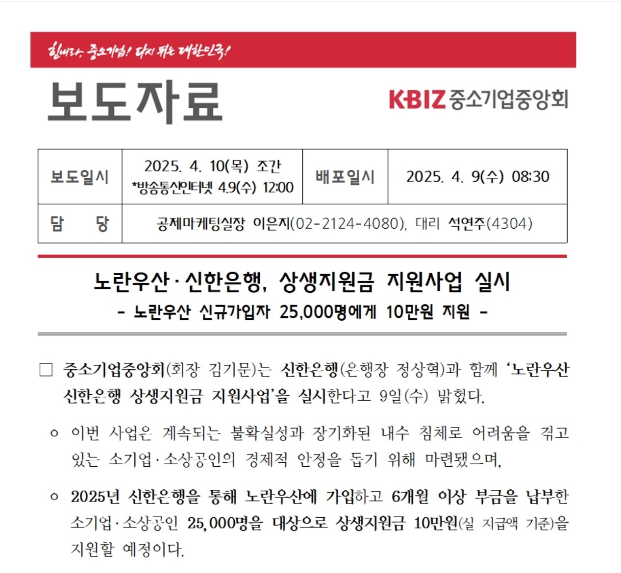 이번 상생지원금 사업은 신한은행과 중소기업중앙회(노란우산)가 함께하는 공식 협력사업입니다.